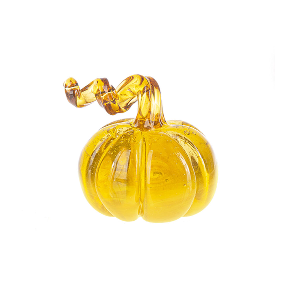 Need a tiny touch of fall for your desk or windowsill? These Mini Glass Pumpkin Figures are just the perfect decorative touch. Made of glass, each pumpkin features a curlicue stem and comes in one of 3 colors: Green, Orange or Yellow. Build your own mini pumpkin patch!