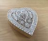 Handcrafted from mango wood, this 6" heart-shaped block features artisanal hand carving with authentic whitewash detailing. Each piece showcases natural wood grain and traditional craftsmanship. Perfect for decorative display or as a functional kitchen accent.