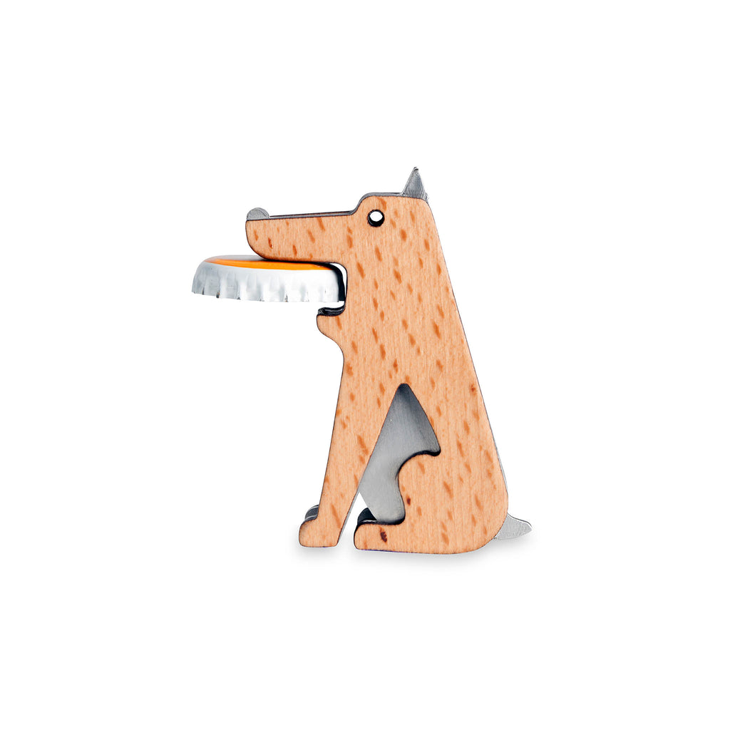 This pup loves to pay fetch with bottle caps! Pop open a beer or soda and turn your bottle cap into a frisbee! A magnet is embedded in the pup's mouth so the cap will still in place until you remove it. Fetch!
