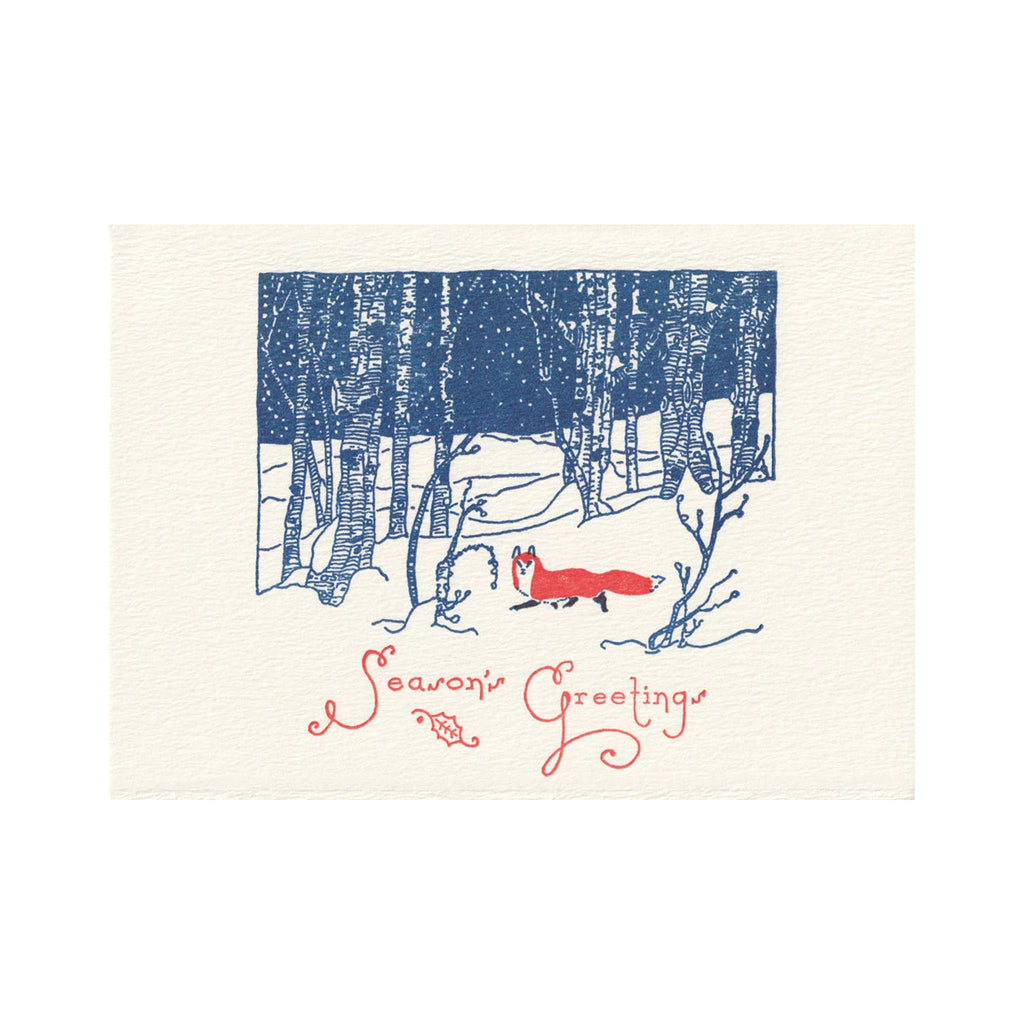 Holiday box sets come packaged in a blue box of eight letterpress cards and matching envelopes.