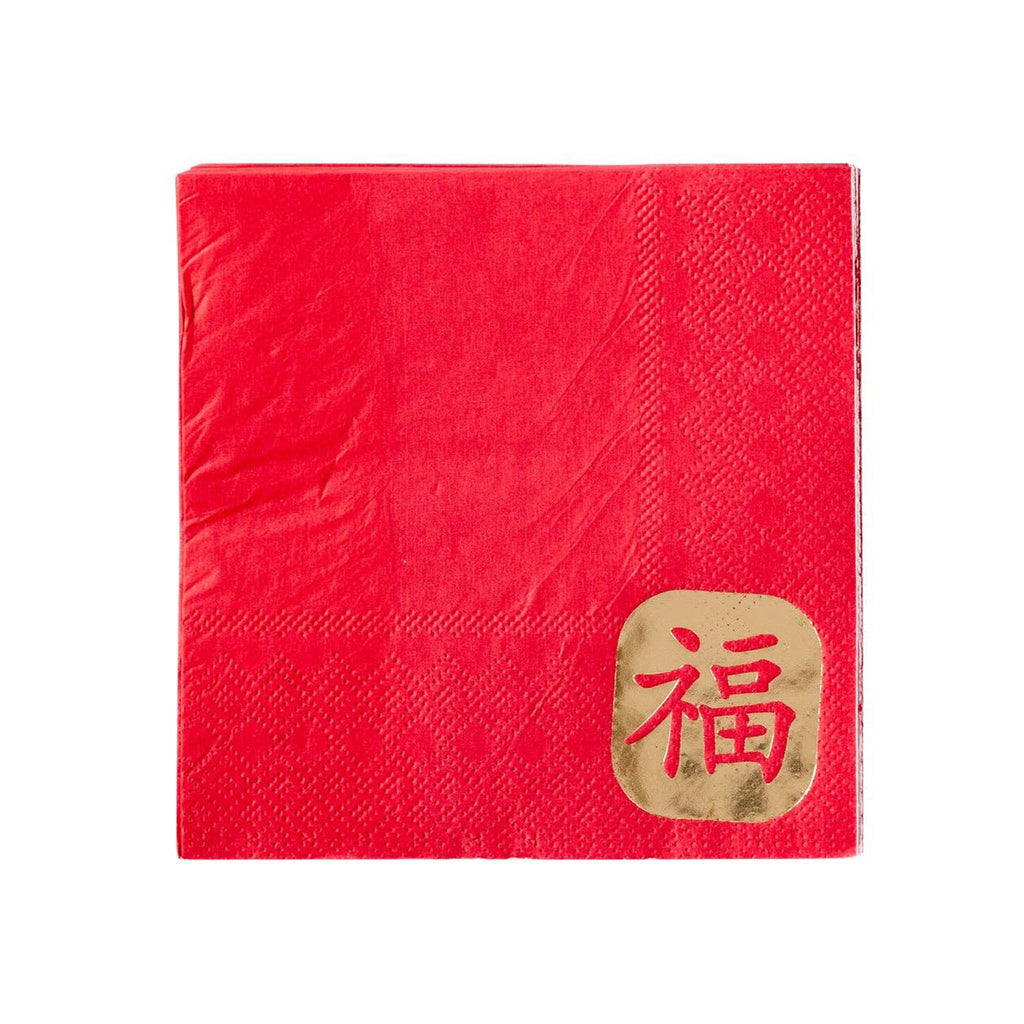 Bring luck and laughter to your Lunar New Year festivities with these delightful Foiled Good Fortune Cocktail Napkins! Each set includes 32 napkins adorned with shimmering foil details that sparkle under party lights, transforming ordinary snack moments into memorable celebrations. The auspicious design captures the spirit of renewal and prosperity while keeping things light and fun. Perfect for catching drips during toasts, displaying appetizers, or simply adding a festive flourish to your tablescape, these napkins are a must-have for anyone hosting Lunar New Year gatherings. Set of 32.