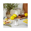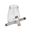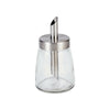 Turn this sugar dispenser over for a quick pour of sugar. Clear glass jar with a stainless steel lid and pouring spout.
